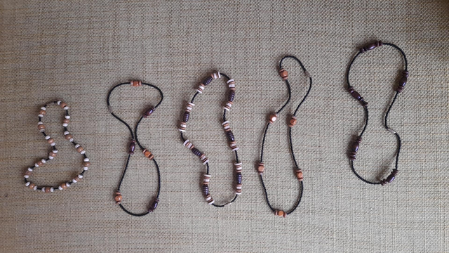Ketting gemaakt van bosproducten die je kan oogsten zonder bomen om te hoeven hakken: takken en zaden, en soms zaken als bamboe. Om de opbrengst uit het bos te vergroten, hebben we een Dremel boor- en slijpmachine gegeven aan een artiest bij het Kambisa! buurtcentrum in Chilonga, Mulenga. Hiermee maakt hij kralen van natuurlijke materialen, vaak restproducten van de nabijgelegen Minamba Research Farm, zoals zaden die niet goed geïdentificeerd kunnen worden, of waarvan de kiemkracht verlopen is. Inmiddels geeft hij ook les aan buurtgenoten. Op deze manier kunnen zij iets verdienen aan het verwerken van gratis beschikbare materialen, die duurzaam geoogst kunnen worden.